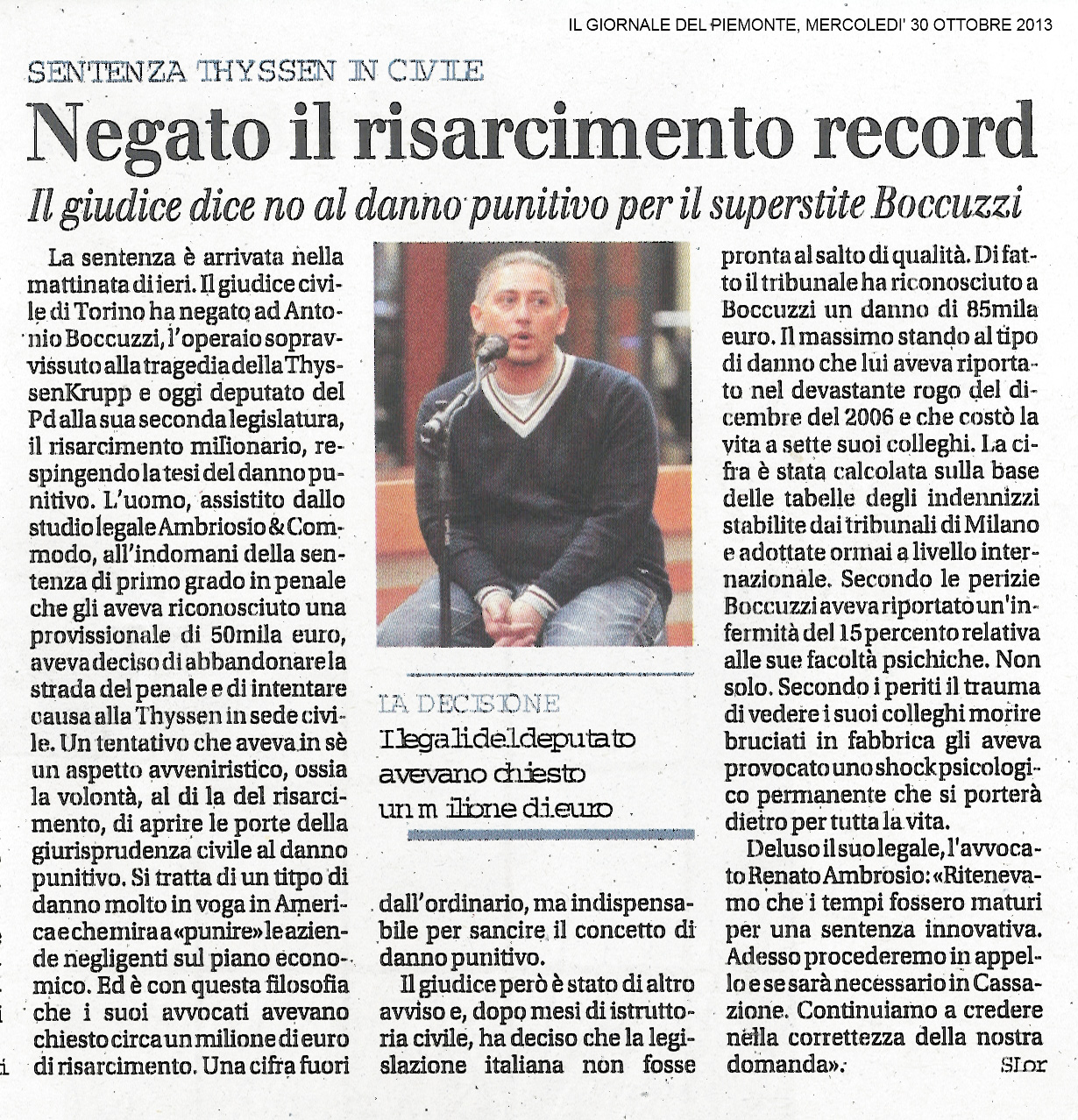 Riportiamo gli articoli pubblicati su La Repubblica – Il Giornale del Piemonte – Cronaca Qui in data 30/10/2013